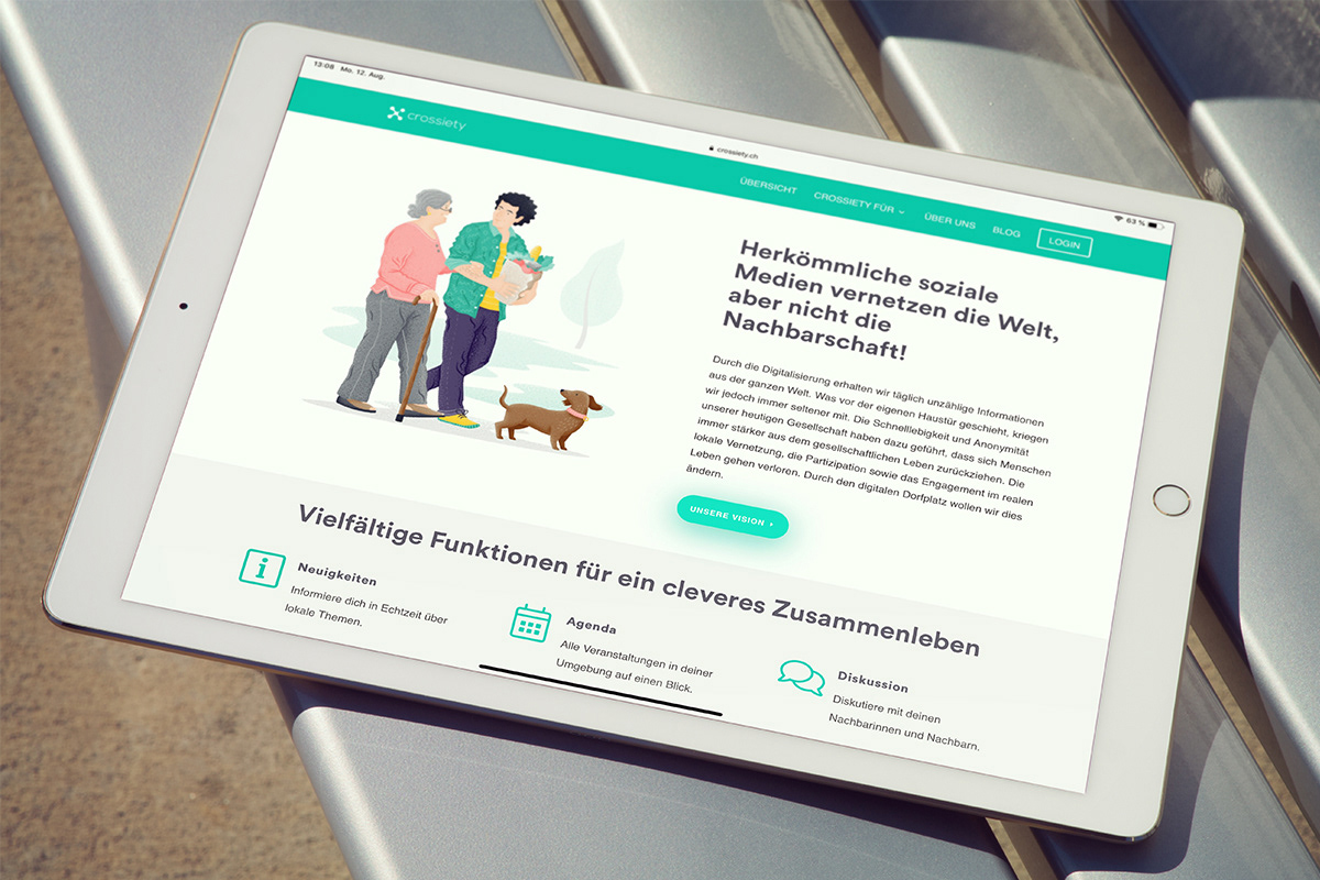 Corporate illustrations for Crossiety a cross-media networking platform for neighborhood, community and local interaction. Aim was to find a illustrative language, which represents the company as addition of the corporate identity and show the benefits of the enterprise.